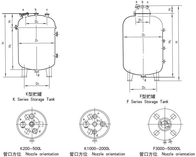 立式贮罐外形尺寸及管口尺寸表